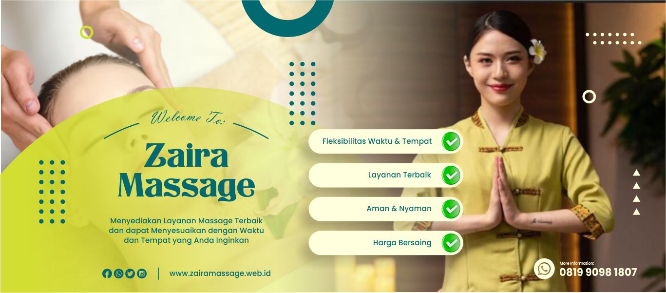 Zaira Massage adalah pilihan utama untuk Anda yang menginginkan pengalaman pijat yang tak terlupakan, kami menyediakan layanan massage panggilan 24 jam yang siap memberikan ketenangan dan relaksasi untuk Anda.