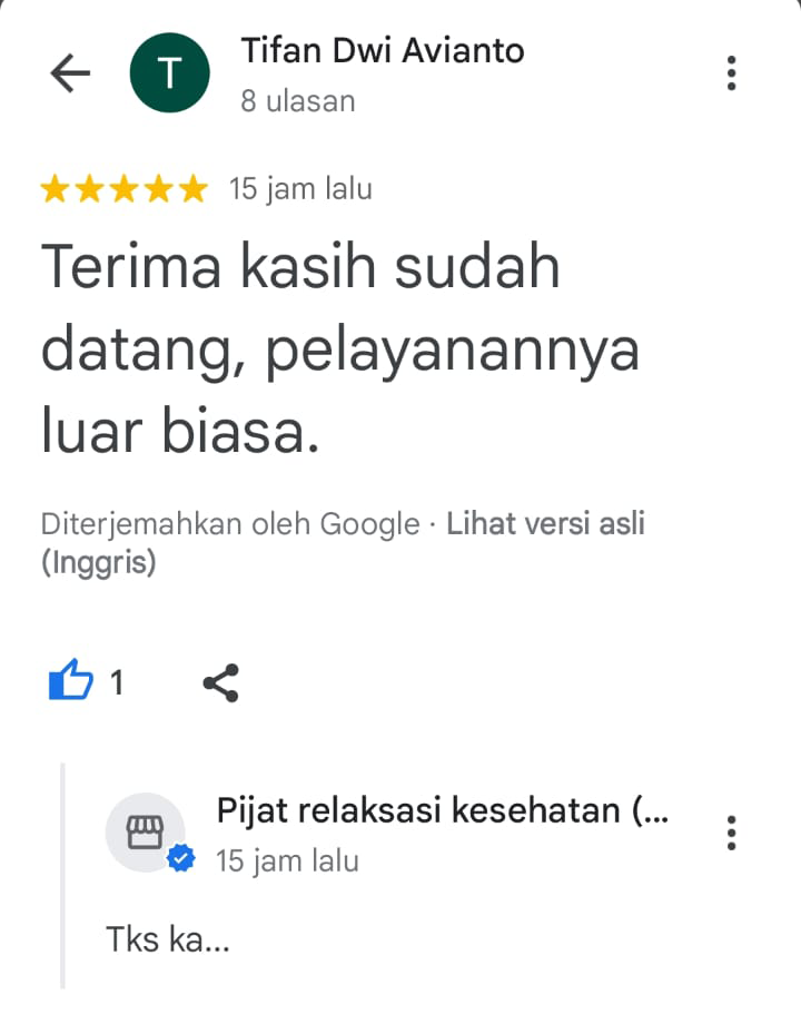 Rasakan sensasi kemudahan massage tanpa harus keluar rumah. Kami menyediakan layanan pijat 24 jam khusus wilayah Jakarta dan sekitarnya. Anda dapat reservasi langsung via whatsapp tanpa aplikasi.